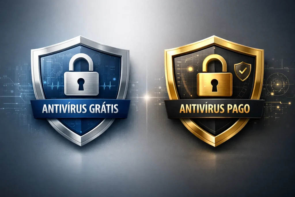 Descubra as principais diferenças entre Antivírus grátis vs pago e escolha a opção que garante mais segurança para seu computador em 2026.
