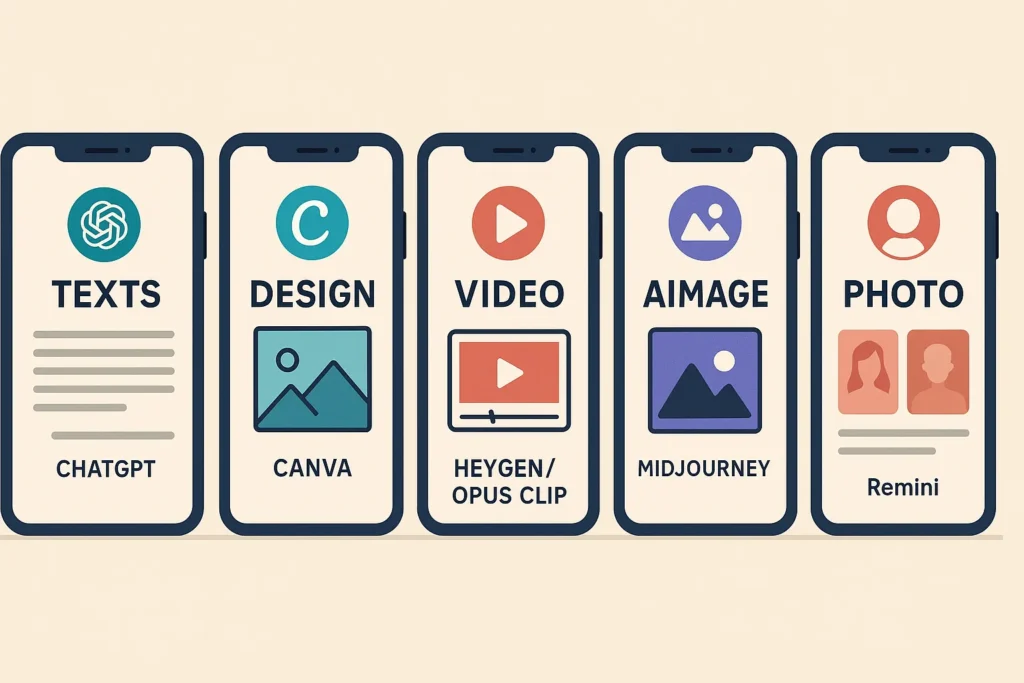 Vídeo é o formato que mais cresce nas redes sociais, e ferramentas de IA como HeyGen e Opus Clip estão revolucionando a edição. Elas cortam, legendam e montam clipes automaticamente.